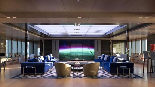 其數百平米開闊的上層甲板空間讓人震撼,提供了無與倫比的視野以及戶外休閑場所,還為直升機、接應艇、潜水艇、各類水上玩具等預留了絕對充足的空間。此外,船東應該是喜歡運動的,甲板上還能打籃球。